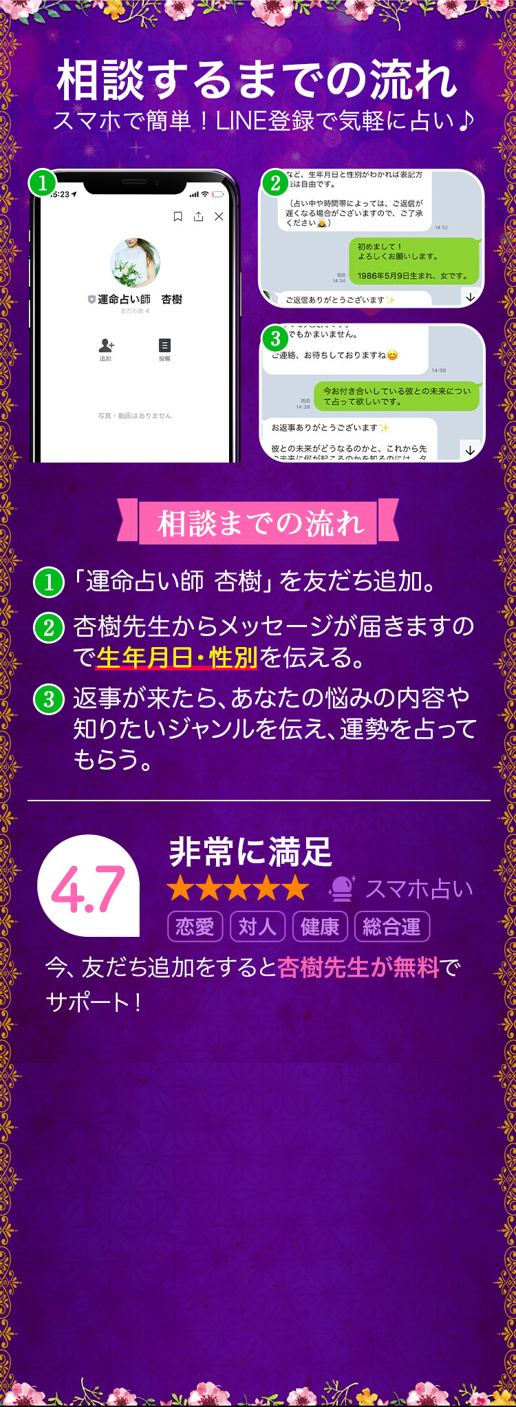 LINEで無料ということだったので気軽な気持ちで占ってもらったのですが・・・具体的なアドバイスまでもらえて驚きました!